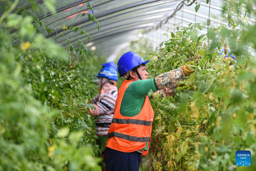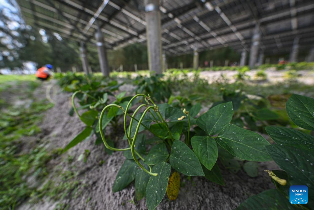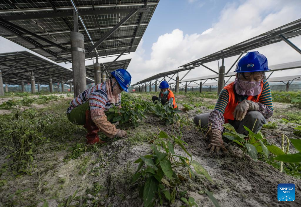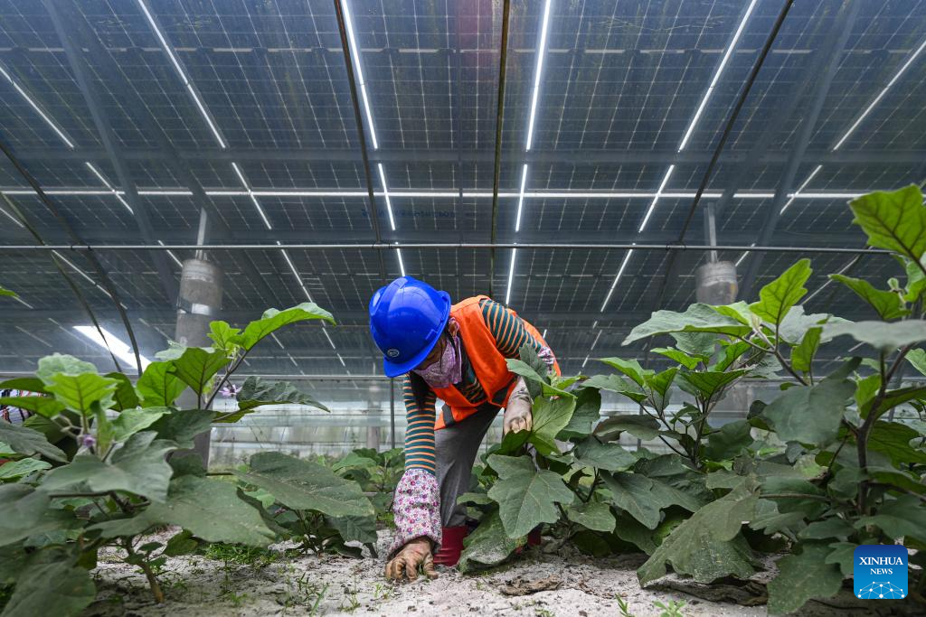 Meanwhile, the village put in great efforts to reclaim the wasteland under the guidance of experts, making it possible to grow vegetables in greenhouses under photovoltaic panels, which increases the efficiency of land use as well as income for local villagers. (Xinhua/Pu Xiaoxu)
