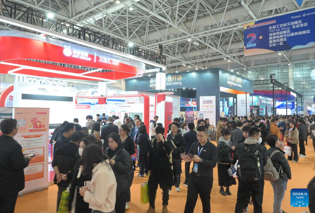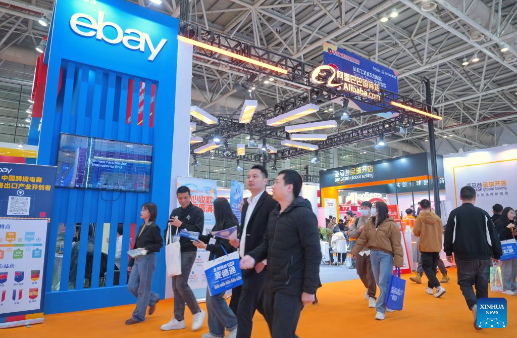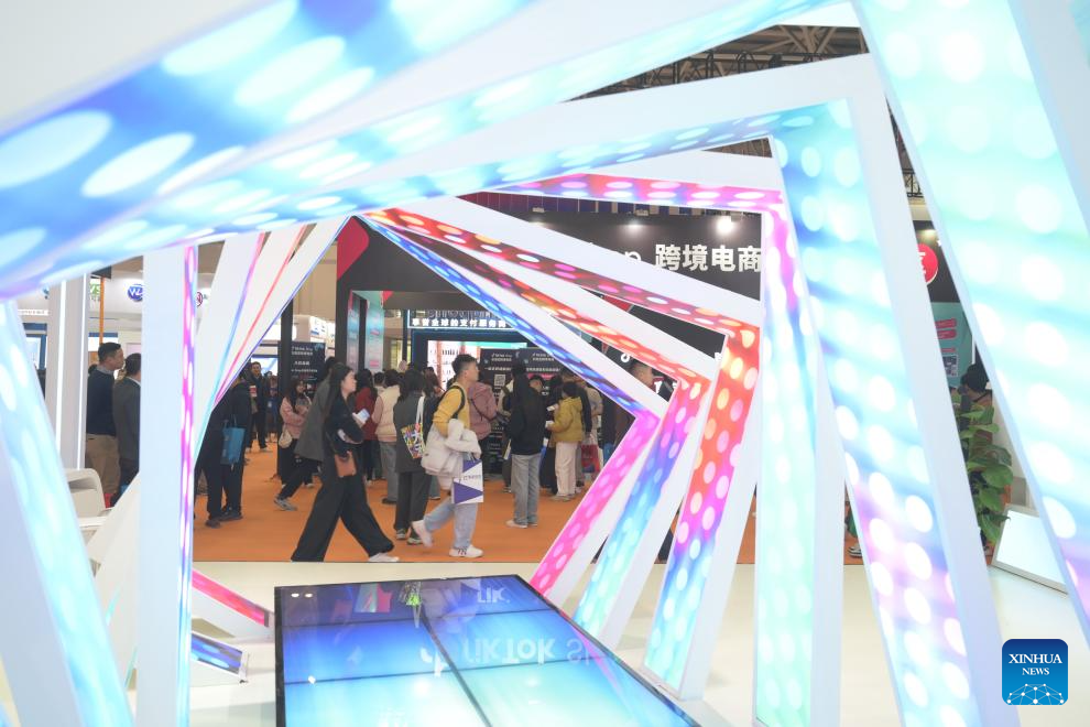 People visit the 4th China Cross-border E-commerce Trade Fair in Fuzhou, southeast China's Fujian Province, March 18, 2024. The trade fair kicked off here on Monday, attracting more than 30 cross-border e-commerce platforms worldwide and over 1,500 exhibitors across China. (Xinhua/Lin Shanchuan)