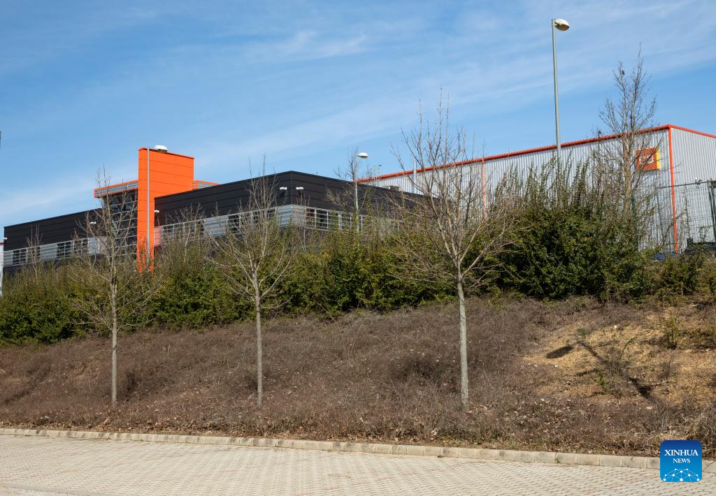 This photo taken on March 18, 2024 shows the exterior view of the NIO Power Europe Plant in Biatorbagy, Hungary.