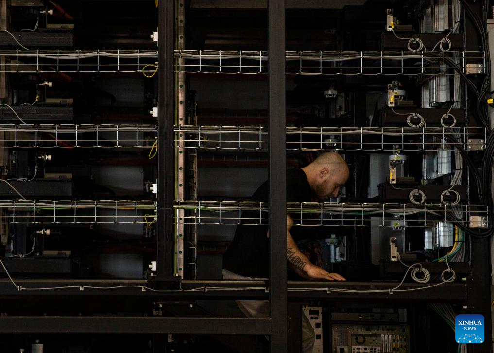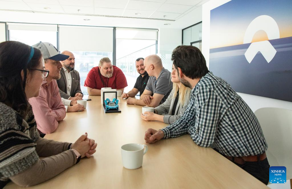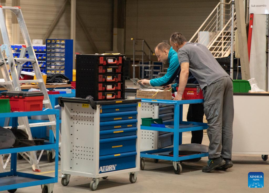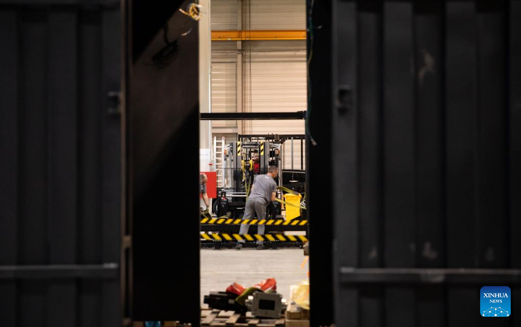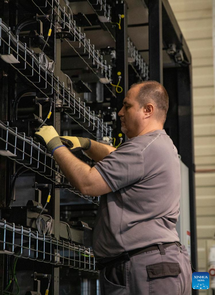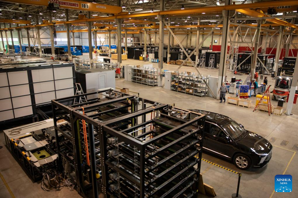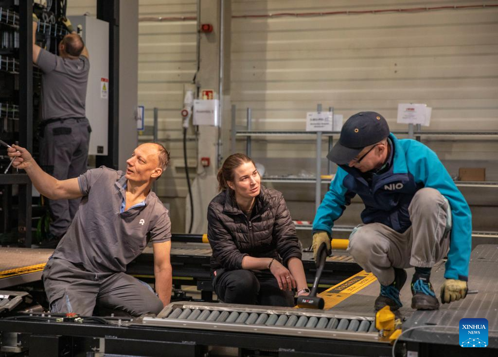The NIO Power Europe Plant spans approximately 10,000 square meters in Biatorbagy of Hungary, serving as NIO's first overseas manufacturing facility. It functions as NIO's European manufacturing, service, and research center for electric products. Its primary operations include the manufacturing and after-sales service of power swap stations, training for NIO's European electric vehicle business, and research and development of electric products. Its operation enhances the efficiency of NIO's energy layout and services in the European market, providing European users with an improved driving experience. (Xinhua/Zhang Fan)