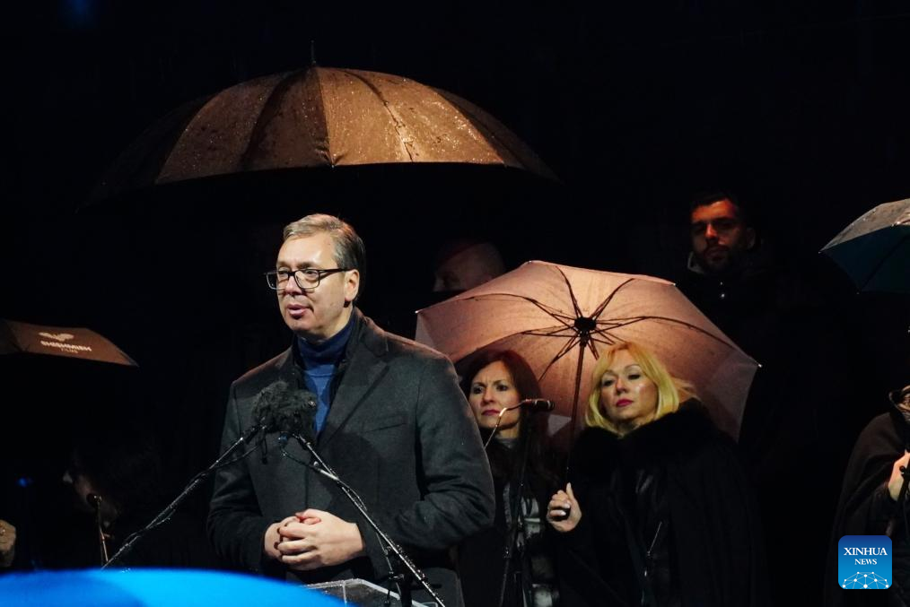 PROKUPLJE, Serbia, March 24 (Xinhua) -- Serbia will never surrender its province of Kosovo and Metohija nor join the NATO alliance, said Serbian President Aleksandar Vucic here Sunday at a commemoration event marking the 25th anniversary of NATO bombing of Yugoslavia.