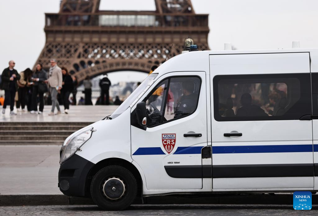 A police vehicle is seen near the Eiffel Tower in Paris, France, on March 25, 2024. The French government decided on Sunday to raise the national security alert system Vigipirate to its highest level to deal with the potential threat the country is facing after Friday's deadly terrorist attack in Russia's capital Moscow. (Xinhua/Gao Jing)