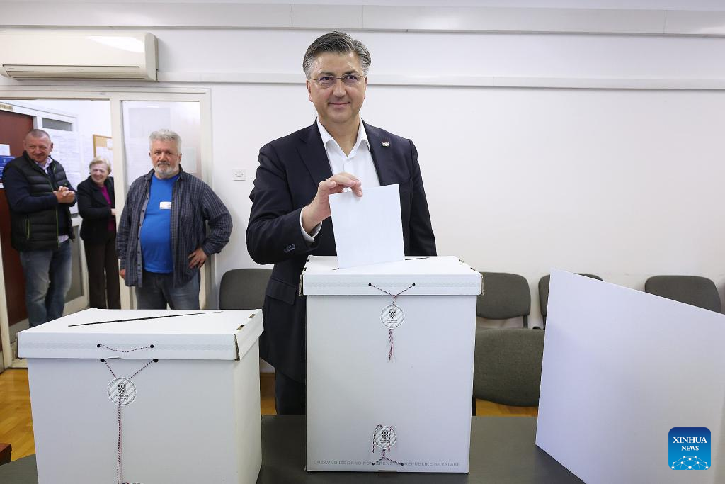Croatian Prime Minister Andrej Plenkovic casts his vote at a polling station in Zagreb, Croatia on April 17, 2024. Parliamentary elections in Croatia kicked off on Wednesday morning, with 2,302 candidates from 59 political parties and independent candidates competing for 151 seats in the parliament. (Goran Stanzl/PIXSELL via Xinhua)