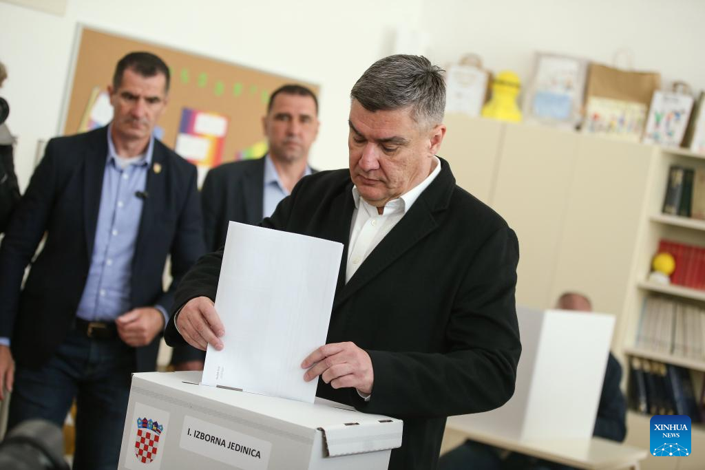 Croatian President Zoran Milanovic casts his vote at a polling station in Zagreb, Croatia on April 17, 2024. Parliamentary elections in Croatia kicked off on Wednesday morning, with 2,302 candidates from 59 political parties and independent candidates competing for 151 seats in the parliament. (Matija Habljak/PIXSELL via Xinhua)