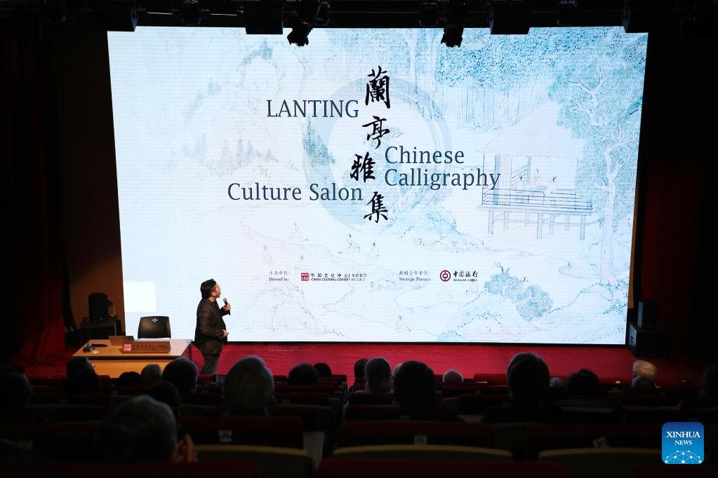 This photo taken on April 19, 2024 shows a view during the "Lanting" Culture Salon at the China Culture Center in Brussels, Belgium. The "Lanting" Culture Salon was held here on Friday to mark the United Nations Chinese Language Day. (Photo by Liu Zihe/Xinhua)