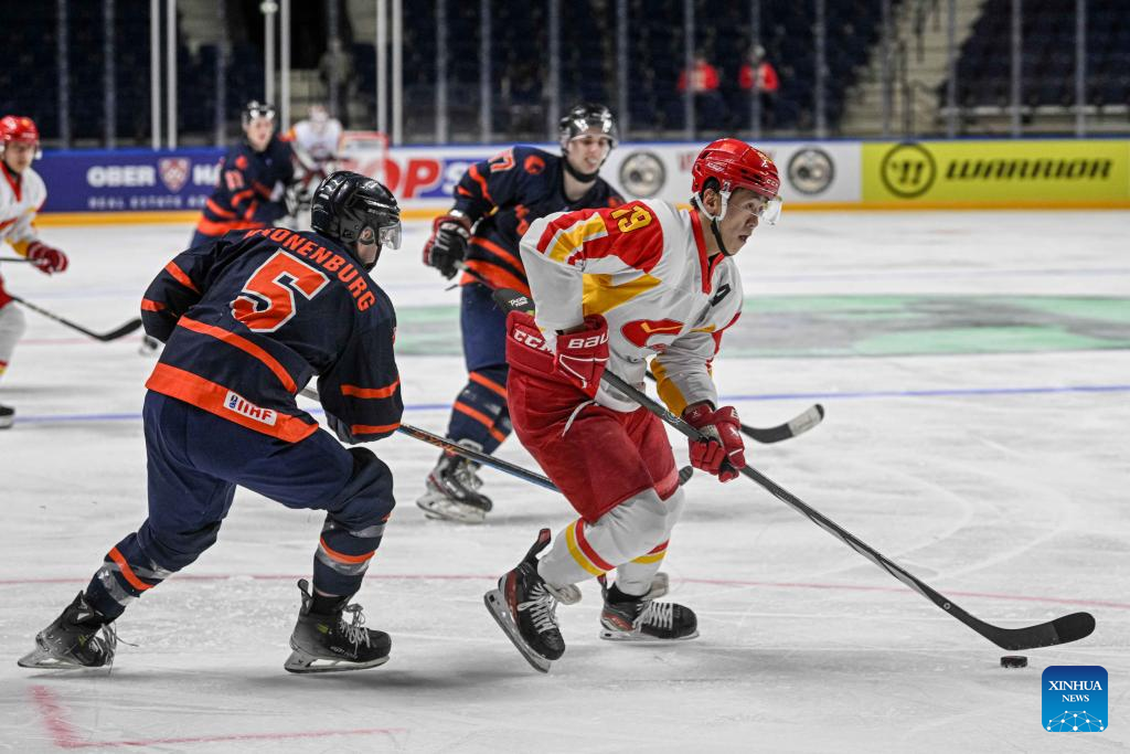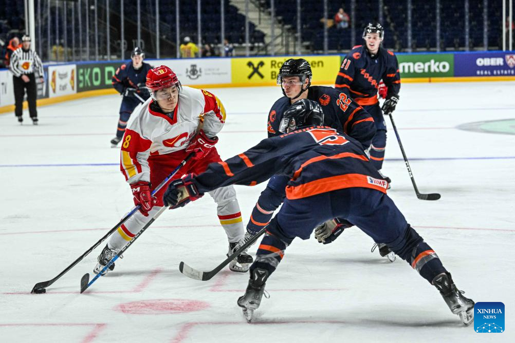 VILNIUS, April 27 (Xinhua) -- China won the first match in the Ice Hockey World Championship Division I-B, beating the Netherlands 3-0 in Lithuania's capital here on Saturday.