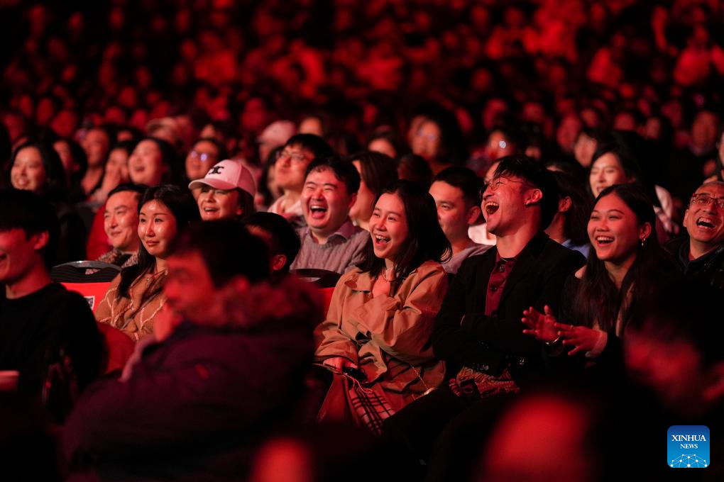 Audience watch Xiangsheng, or crosstalk comedy in London, Britain, April 27, 2024.