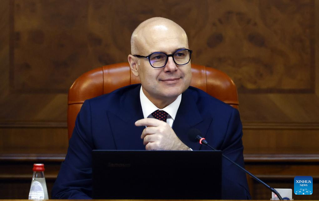 Serbia's new Prime Minister Milos Vucevic reacts after taking the oath during a swearing-in ceremony at the Serbian Parliament building in Belgrade, Serbia, on May 2, 2024. The Serbian parliament elected the country's new government on Thursday, led by Prime Minister Milos Vucevic. Vucevic's government, with Finance Minister Sinisa Mali as the first deputy prime minister, was sworn into duty after it garnered 152 votes in the 250-member parliament. (Photo by Predrag Milosavljevic/Xinhua)