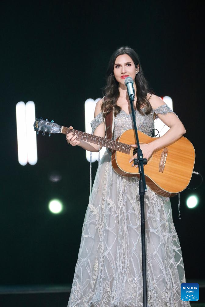 French singer Joyce Jonathan participates in Chinese reality show "Ride the Wind 2024" in Changsha, central China's Hunan Province, March 5, 2024. (Mango TV/Handout via Xinhua)