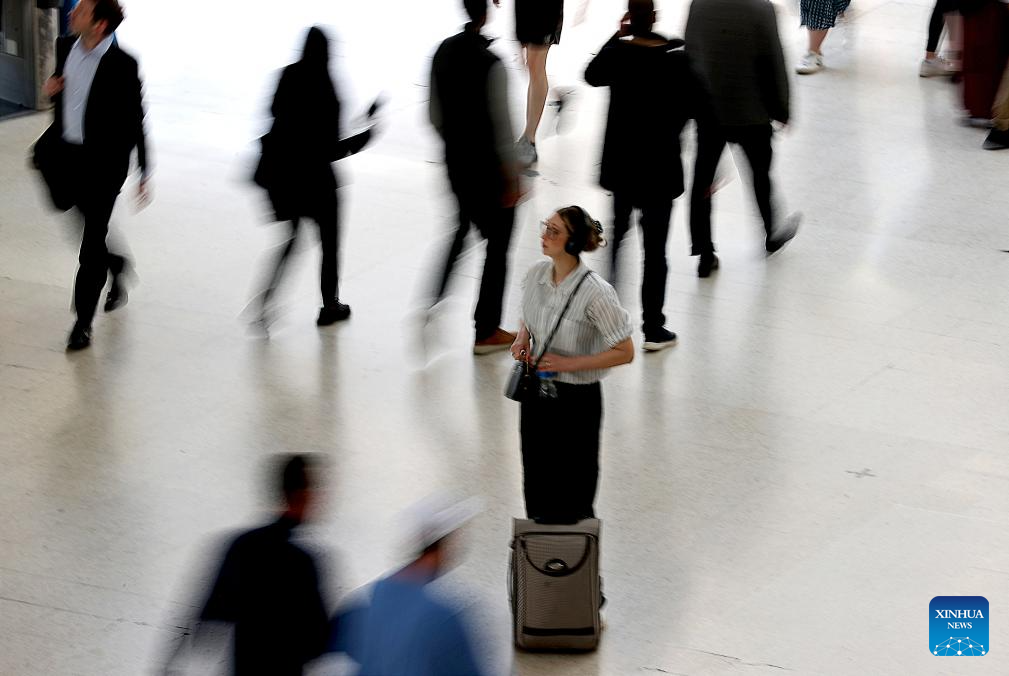 People are seen at Waterloo Station in London, Britain, on May 8, 2024. Train drivers in Britain went on a fresh wave of strikes and overtime bans, disrupting rail travel this week. (Xinhua/Li Ying)