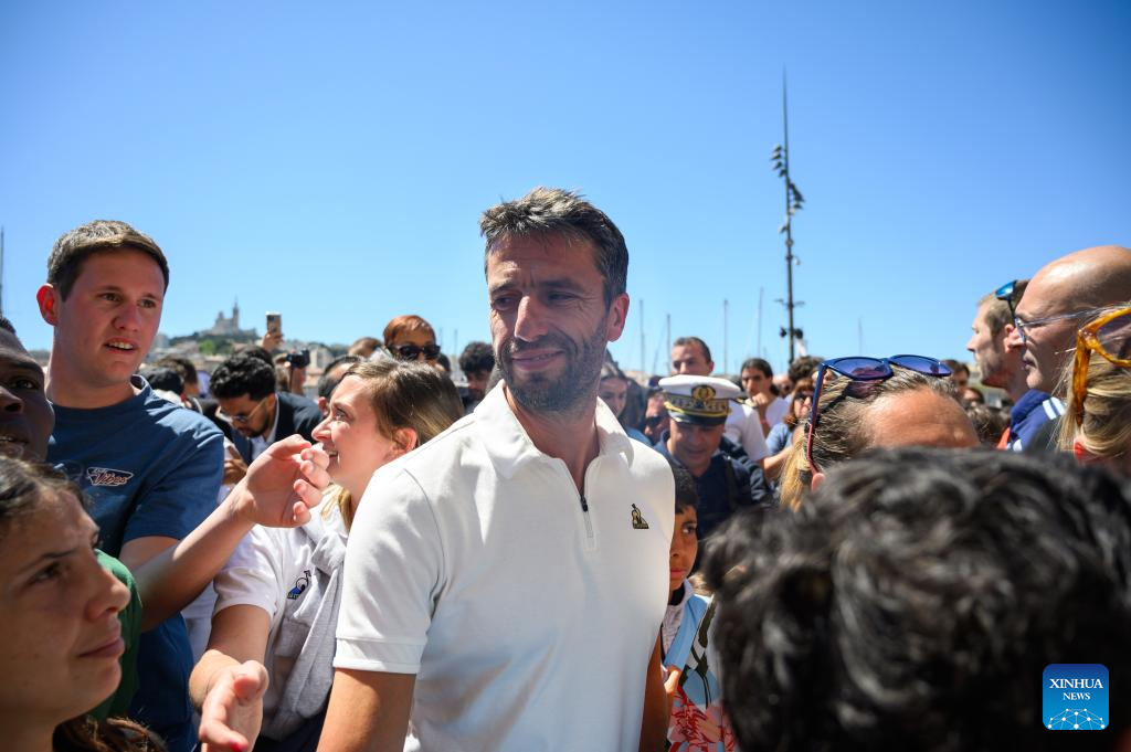 MARSEILLE, France, May 9 (Xinhua) -- Following the arrival of the Olympic torch at the Vieux Port the day before, the relay kicked off its first stop on French soil in Marseille on Thursday which was imbued with elements of football club Olympique de Marseille.