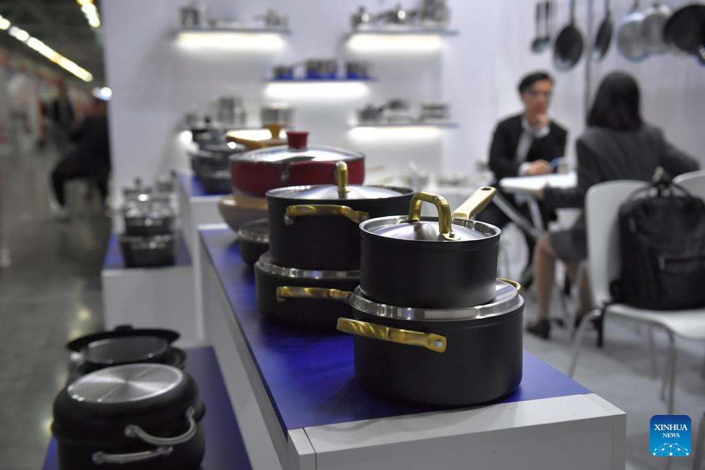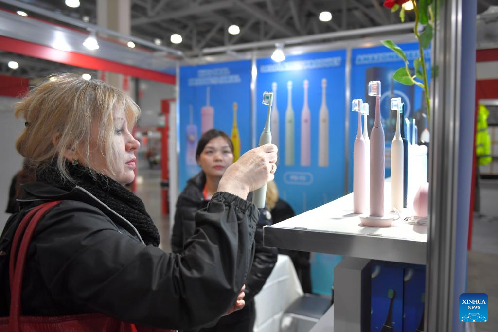 People attend the 2nd international exhibition of consumer goods for house, garden, sports and leisure at Crocus Expo International Exhibition Center in Moscow, Russia, on May 13, 2024. (Photo by Alexander Zemlianichenko Jr/Xinhua)