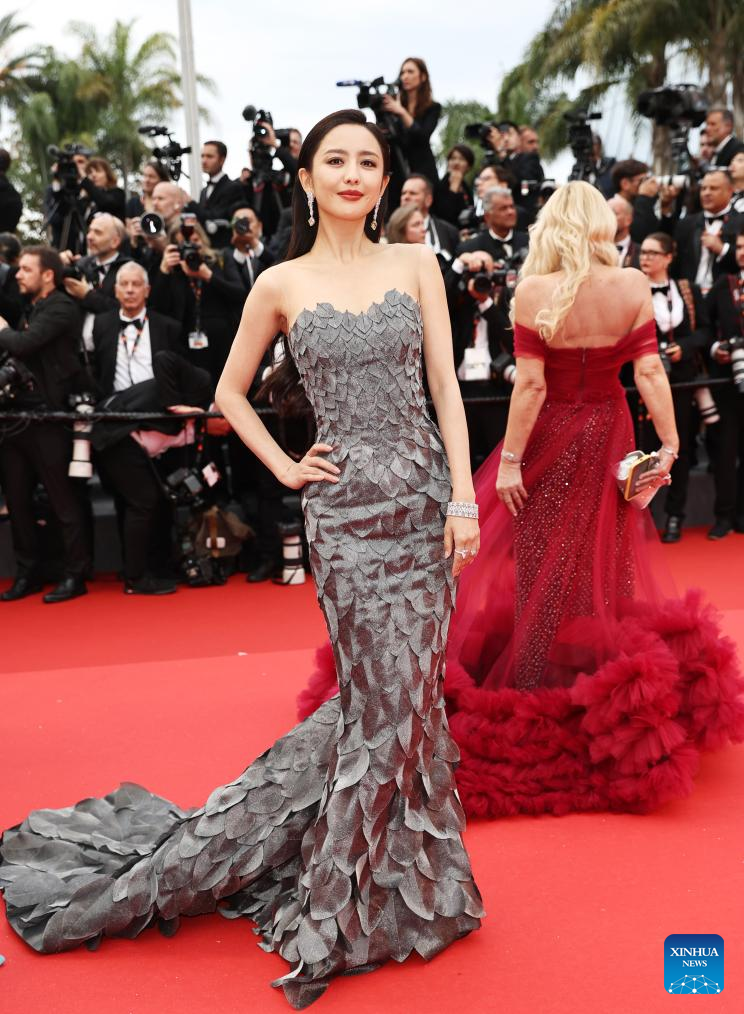 Chinese actress Tong Liya arrives at the red carpet of the opening ceremony during the 77th edition of the Cannes Film Festival in Cannes, southern France, on May 14, 2024. The 77th edition of the Cannes Film Festival opened Tuesday on the French Riviera, with a selection of 22 films vying for the coveted Palme d'Or.