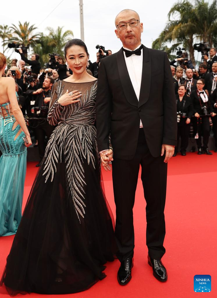 Chinese director Guan Hu (R) and actress Liang Jing arrive at the red carpet of the opening ceremony during the 77th edition of the Cannes Film Festival in Cannes, southern France, on May 14, 2024. The 77th edition of the Cannes Film Festival opened Tuesday on the French Riviera, with a selection of 22 films vying for the coveted Palme d'Or.