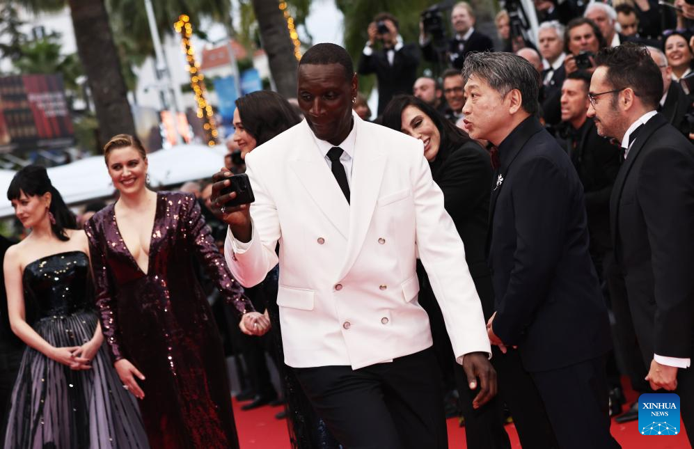 French actor Omar Sy (front), also a jury member of the 77th edition of the Cannes Film Festival, appears on the red carpet of the opening ceremony during the festival in Cannes, southern France, on May 14, 2024. The 77th edition of the Cannes Film Festival opened Tuesday on the French Riviera, with a selection of 22 films vying for the coveted Palme d'Or.