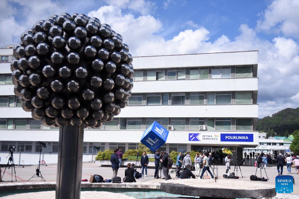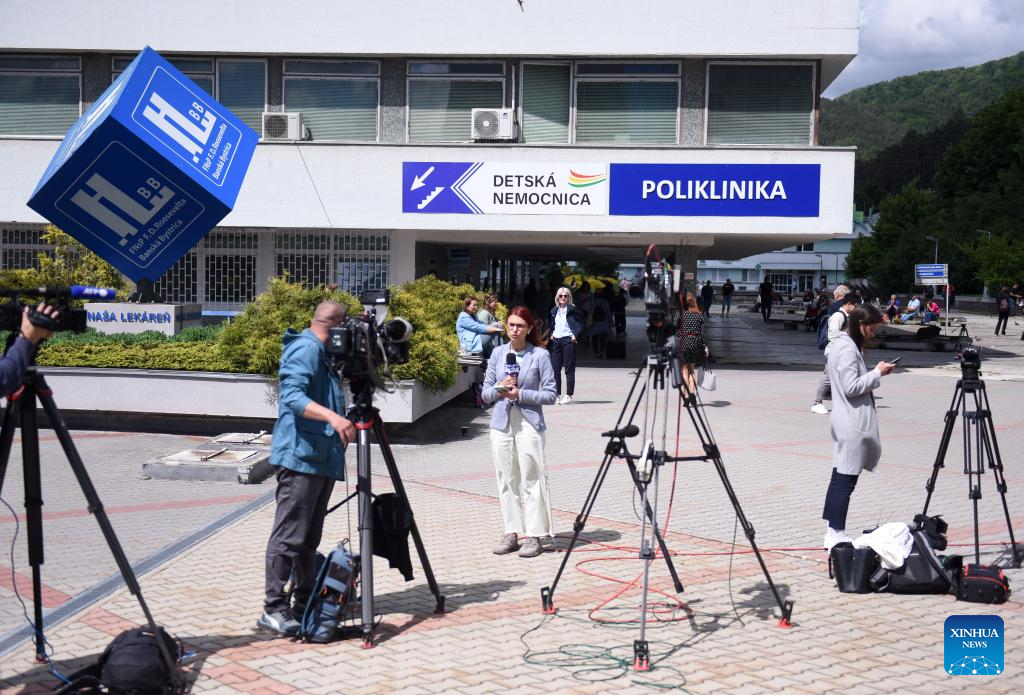 Media staff members work outside a hospital in which Slovak Prime Minister Robert Fico receives medical treatment, in Banska Bystrica, Slovakia, on May 16, 2024. The condition of Slovak Prime Minister Robert Fico after the Wednesday shooting is still serious, Deputy Prime Minister and Defence Minister Robert Kalinak said here Thursday afternoon. (Xinhua/He Canling)