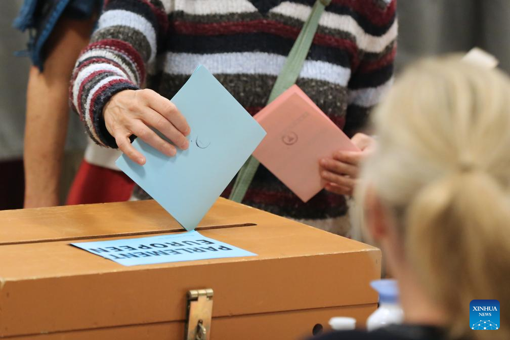 A man casts his vote for the European Parliament elections at a polling station in Wavre, Belgium, June 9, 2024. (Xinhua/Zhao Dingzhe)