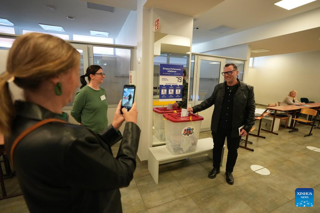 A man casts his vote for the European Parliament elections at a polling station in Riga, Latvia, June 8, 2024. (Photo by Janis Laizans/Xinhua)