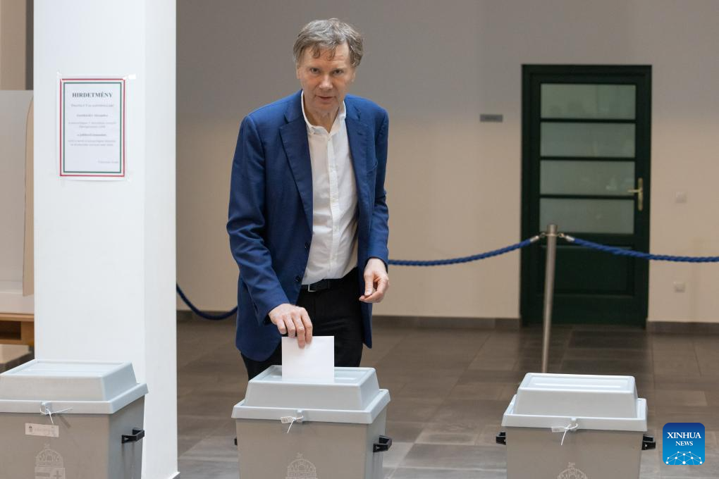 A man casts his vote for the European Parliament elections at a polling station in Budapest, Hungary, June 9, 2024. (Photo by Attila Volgyi/Xinhua)