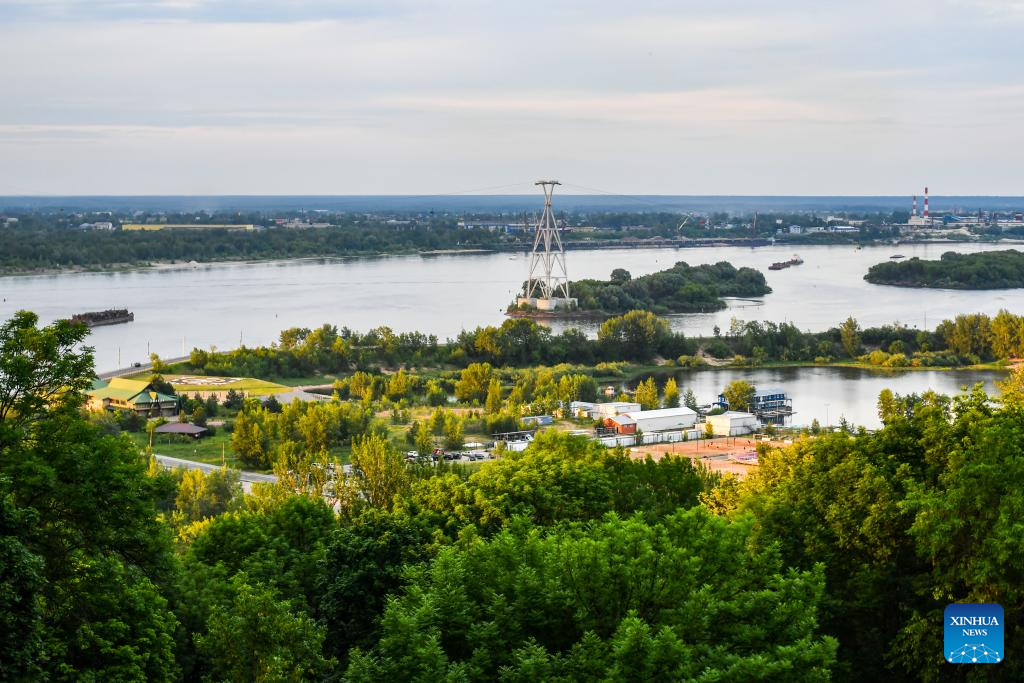 This photo taken on June 10, 2024 shows a scenery of the Volga River in Nizhny Novgorod, Russia. (Xinhua/Cao Yang)