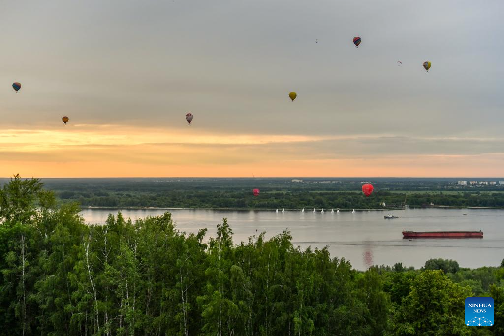 Flying balloons are pictured in Nizhny Novgorod, Russia, June 9, 2024. (Xinhua/Cao Yang)