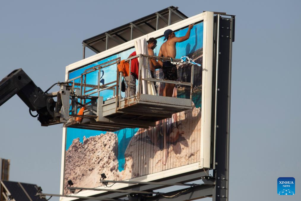 People work during a heatwave in Nicosia, Cyprus, on June 14, 2024. An elderly woman has died and several other people have been hospitalized with heatstroke symptoms as temperatures in Cyprus soared on Friday to an all-time June high of 45 degrees Celsius, the country's health authorities announced. (Photo by George Christophorou/Xinhua)