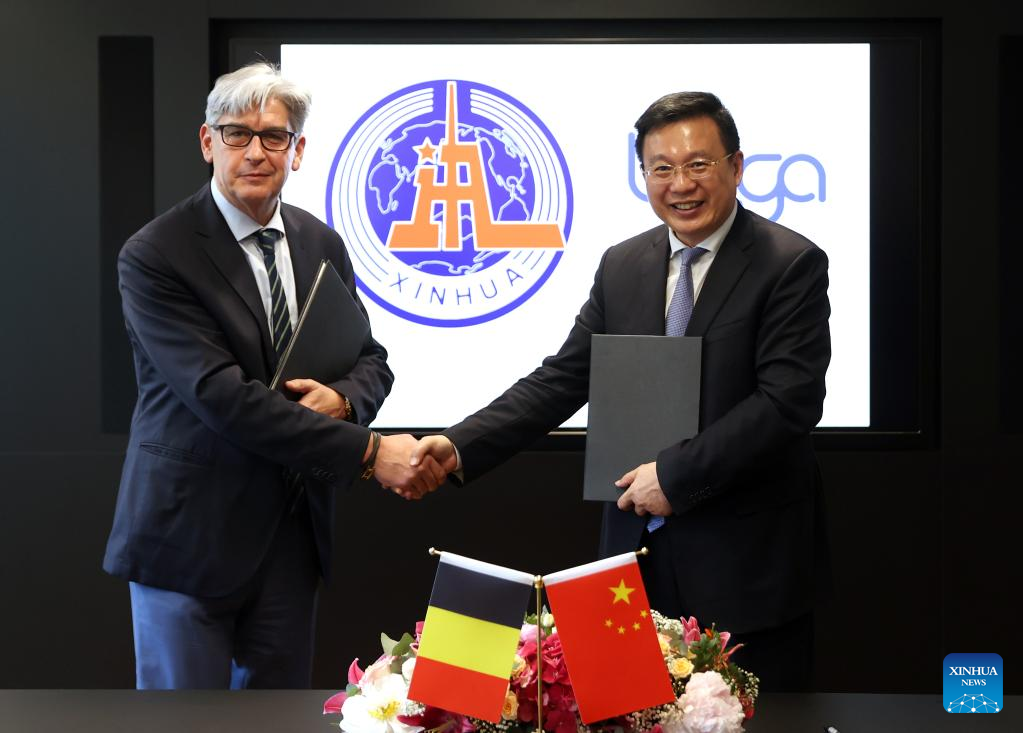 BRUSSELS, June 18 (Xinhua) -- President of Xinhua News Agency Fu Hua signed a memorandum of understanding (MoU) with Patrick Lacroix, CEO of Belgium's Belga News Agency, in Brussels on Tuesday, in a move to deepen cooperation between the two agencies.
