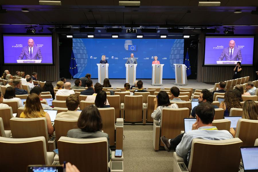 EU leaders agreed on top EU posts after complex political bargaining and discussed issues such as military support to Ukraine, Middle East developments, security, defense, competitiveness, and the EU strategic agenda for the next five years during the European Council summit.