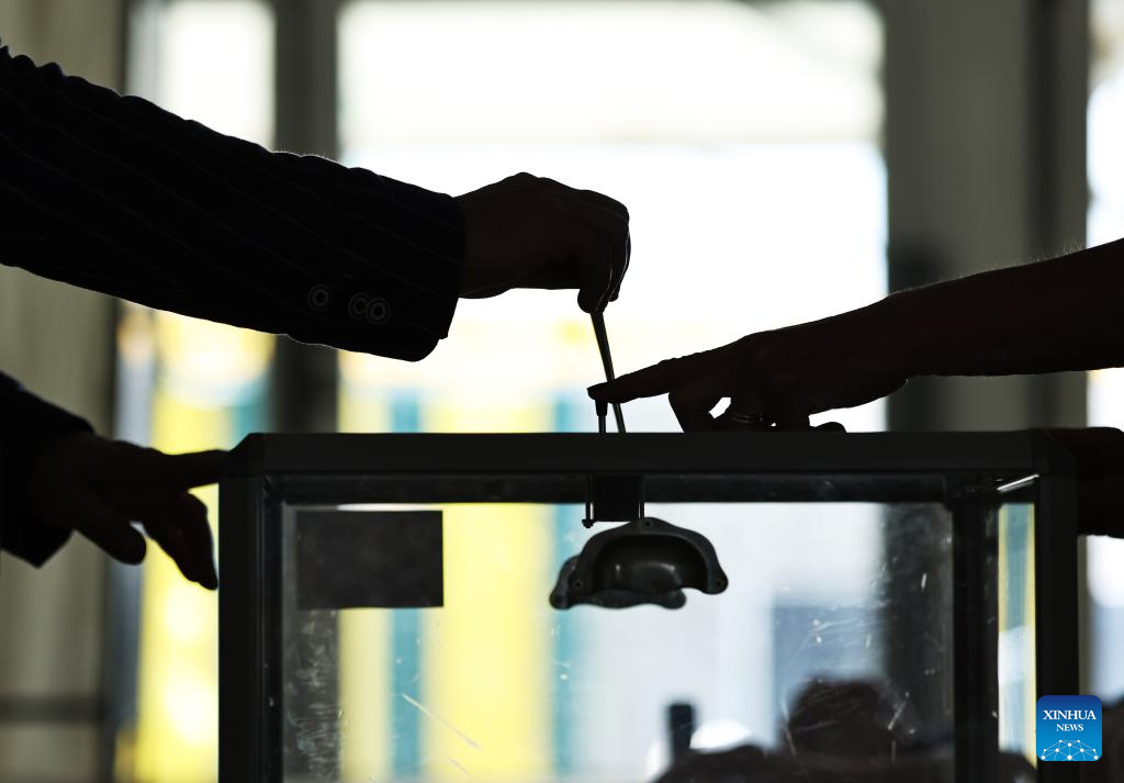 A resident casts his vote at a polling station in Clichy-La-Garenne, near Paris, France, June 30, 2024. (Xinhua/Gao Jing)
