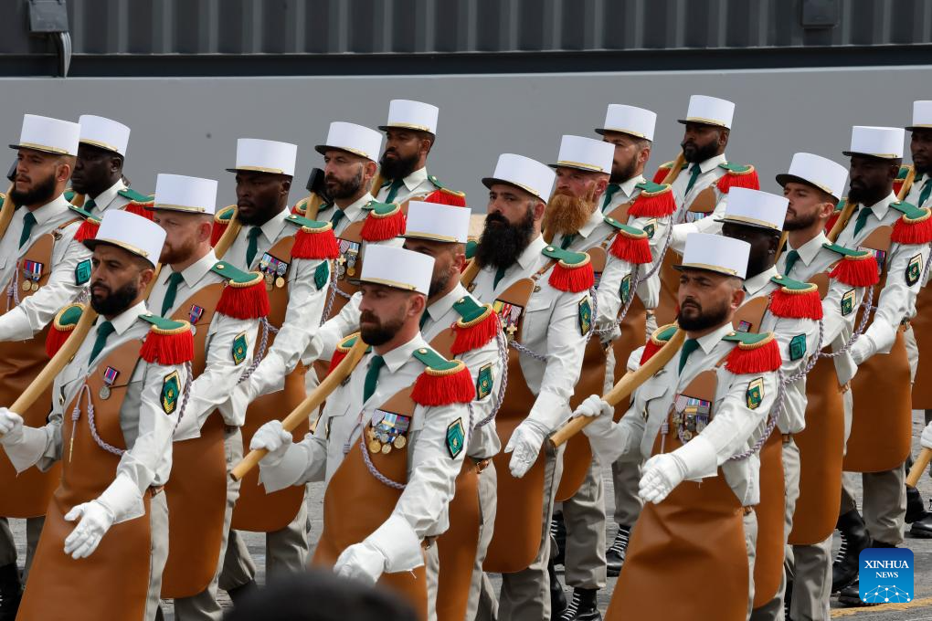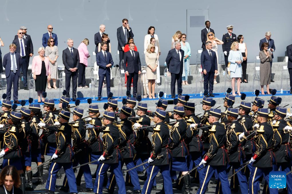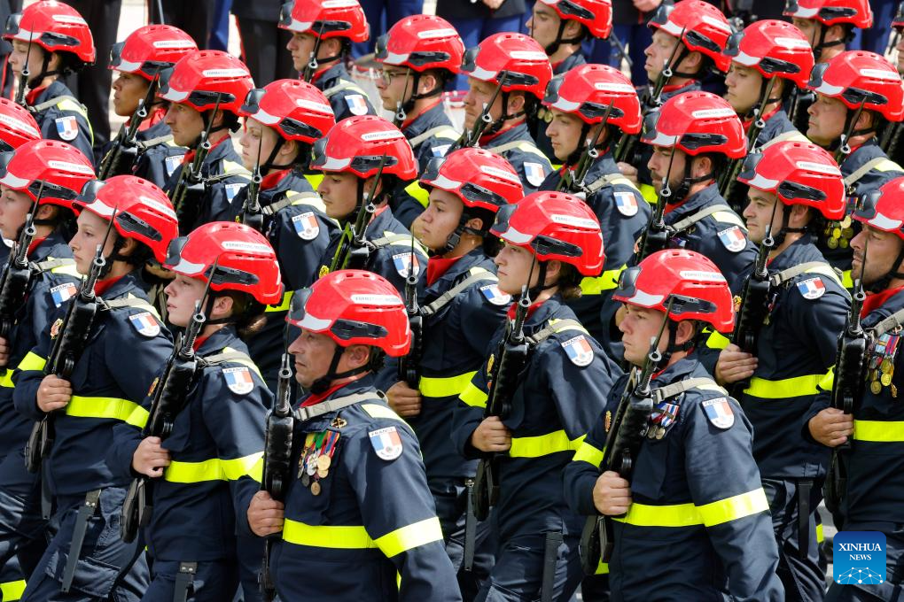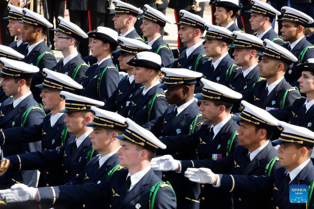 Participants attend the annual Bastille Day military parade in Paris, France, on July 14, 2024. (Photo by Henri Szwarc/Xinhua)