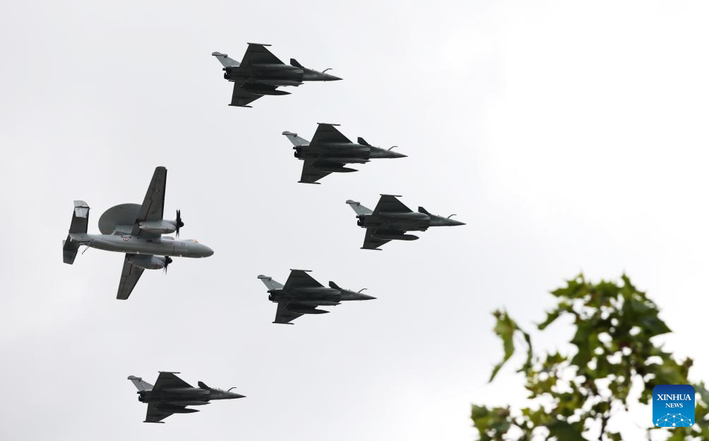 This photo taken on July 14, 2024 shows the annual Bastille Day military parade in Paris, France. (Photo by Henri Szwarc/Xinhua)