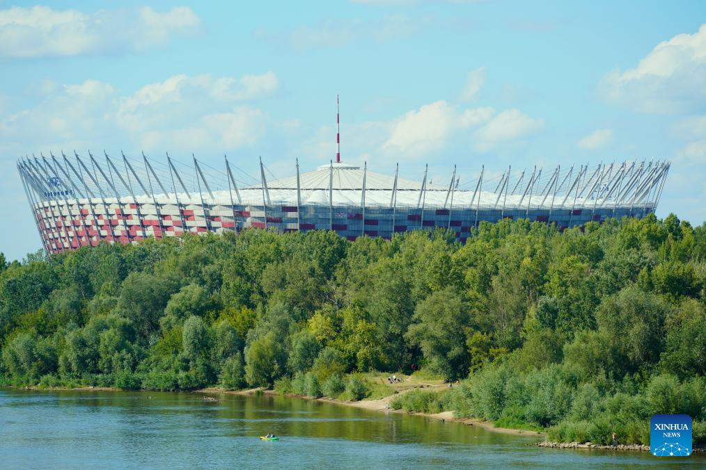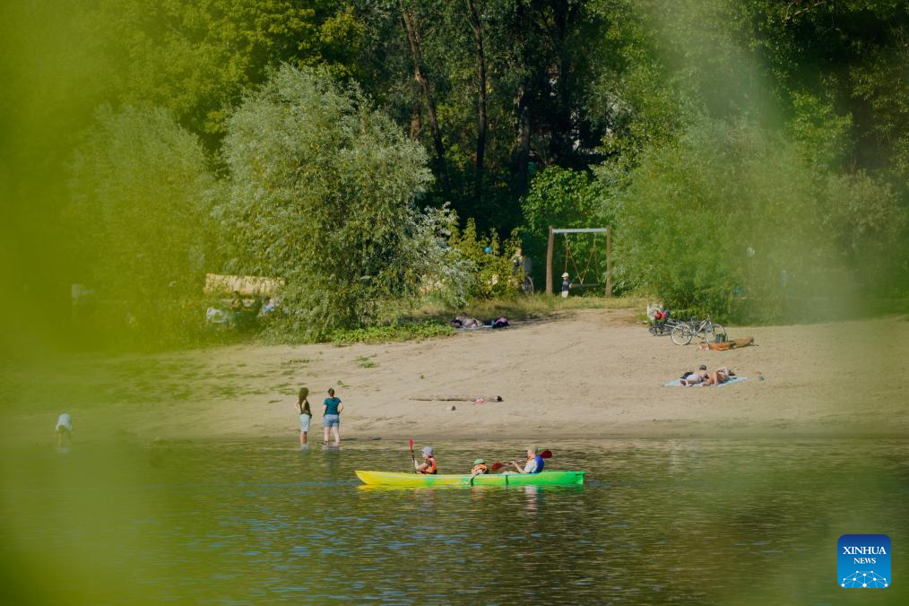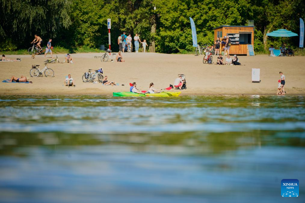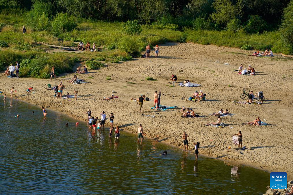 People cool themselves off along the Vistula River in Warsaw, Poland, July 14, 2024. (Photo by Jaap Arriens/Xinhua)