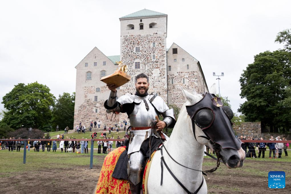 A winner poses for photos during the Turku Castle Tournament 2024 in Turku, Finland, July 14, 2024.