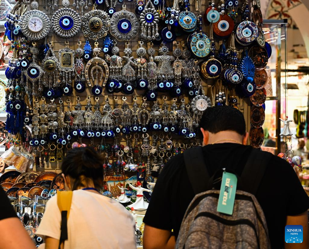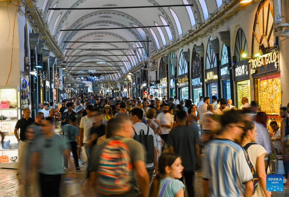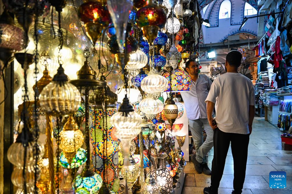 This photo taken on July 15, 2024 shows a scene at the Grand Bazaar of Istanbul, Türkiye. The time-honored Grand Bazaar, which boasts a history of more than 500 years, is one of the oldest and largest bazaars in the world. (Xinhua/Liu Lei)