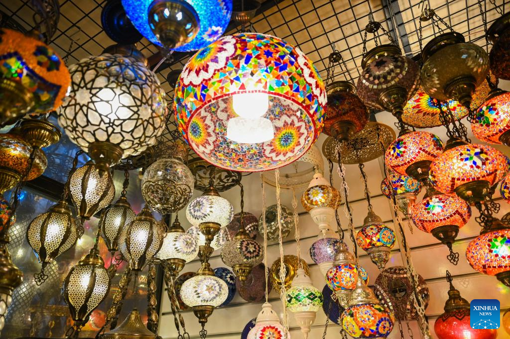This photo taken on July 15, 2024 shows lights at the Grand Bazaar of Istanbul, Türkiye. The time-honored Grand Bazaar, which boasts a history of more than 500 years, is one of the oldest and largest bazaars in the world. (Xinhua/Liu Lei)