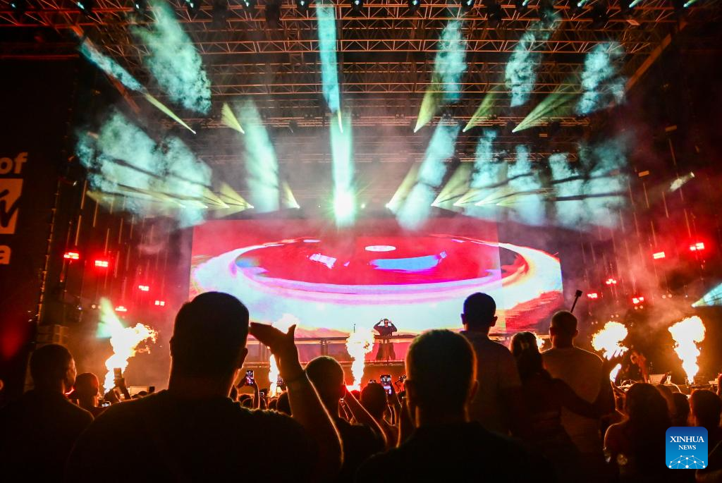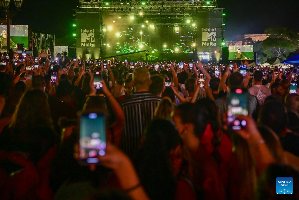People attend the 16th edition of the annual Isle of MTV concert in Floriana, Malta, July 16, 2024. The summer open-air concert marks the start of the Isle of MTV Malta Music Week, which will continue until July 21. (Photo by Jonathan Borg/Xinhua)