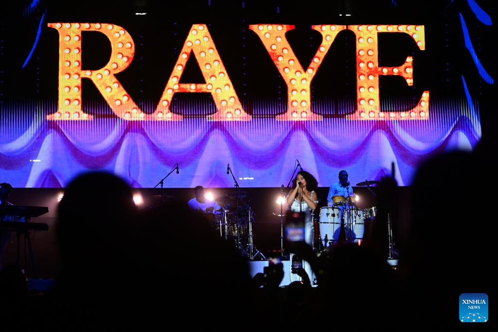 British singer Raye performs at the 16th edition of the annual Isle of MTV concert in Floriana, Malta, July 16, 2024. The summer open-air concert marks the start of the Isle of MTV Malta Music Week, which will continue until July 21. (Photo by Jonathan Borg/Xinhua)