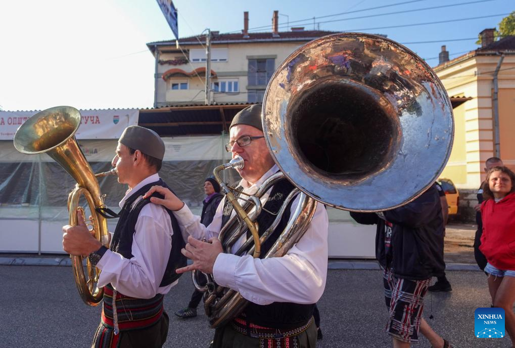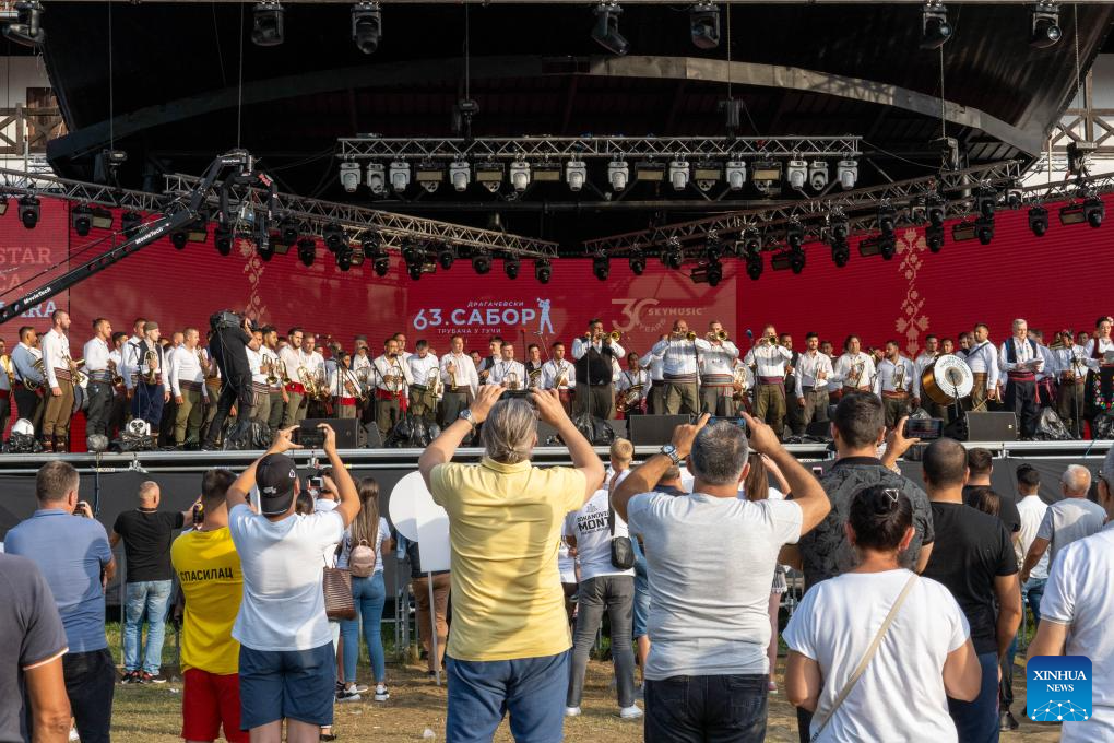 GUCA, Serbia, Aug.5 (Xinhua) -- In a serene Serbian village two hours' drive from the capital Belgrade, Sunday dawned to the sound of brass orchestras, marking the climactic finale of the 63rd Guca trumpet festival.