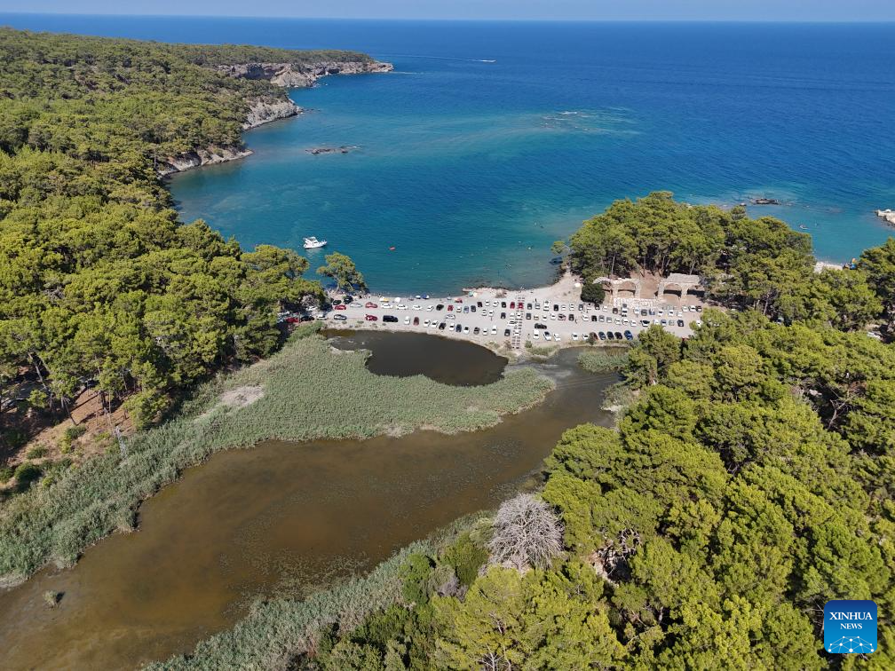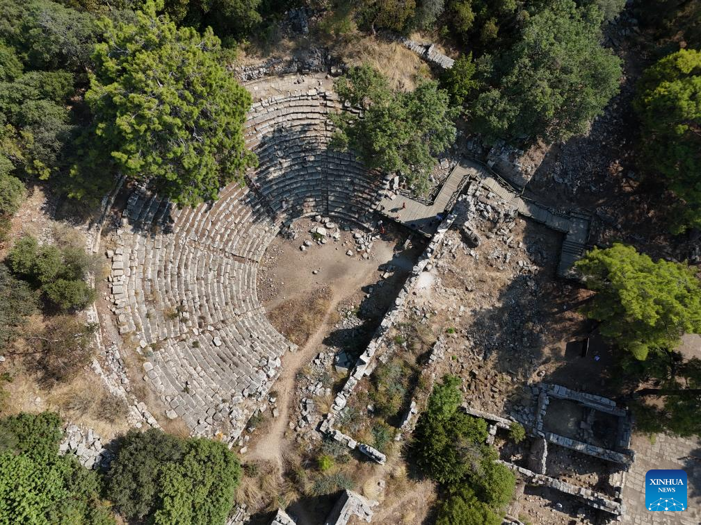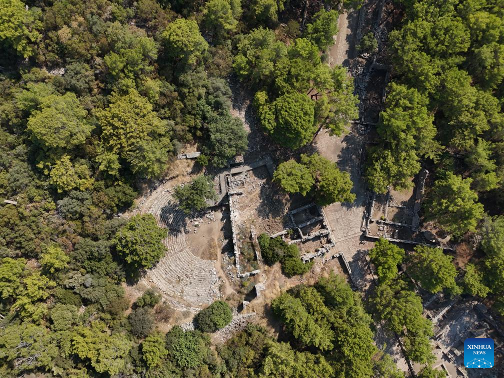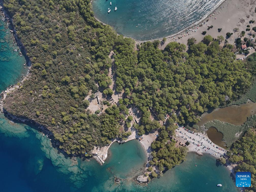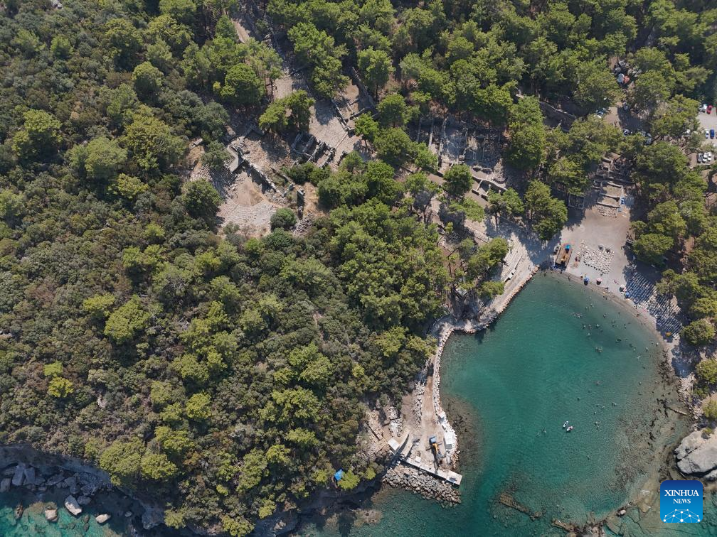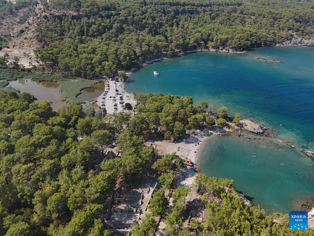 This aerial photo taken on Aug. 6, 2024 shows the ruins of the ancient city Phaselis in Antalya, Türkiye. (Mustafa Kaya/Handout via Xinhua)
