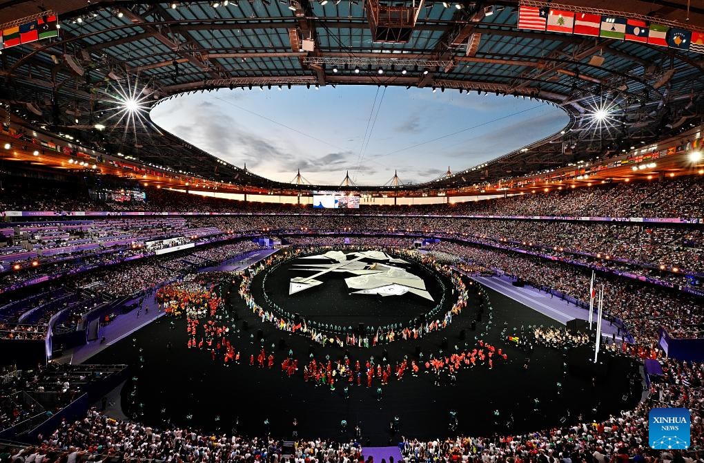 Athletes attend the closing ceremony of the Paris 2024 Olympic Games at the Stade de France in Paris, France, Aug. 11, 2024. (Xinhua/Xu Chang)