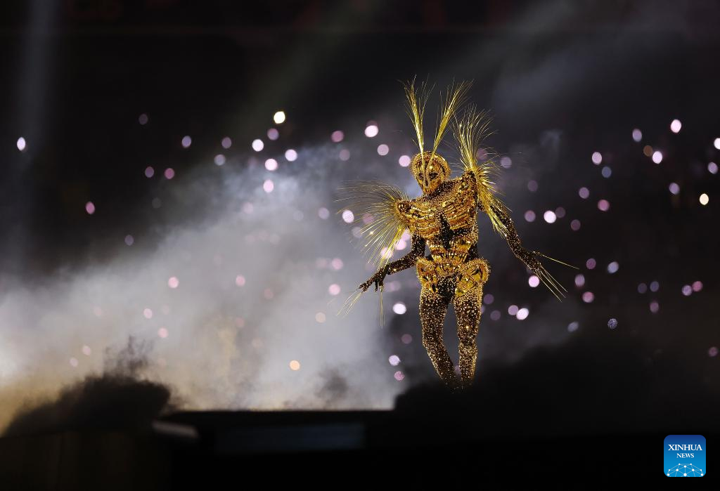 The Golden Voyager performs during the closing ceremony of the Paris 2024 Olympic Games at the Stade de France in Paris, France, Aug. 11, 2024. (Xinhua/Cao Can)