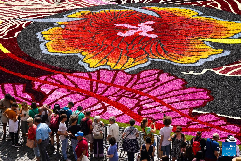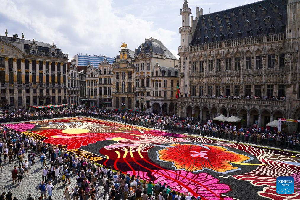 This photo taken on Aug. 15, 2024 shows a flower carpet at a square in Brussels, Belgium. (Xinhua/Peng Ziyang)