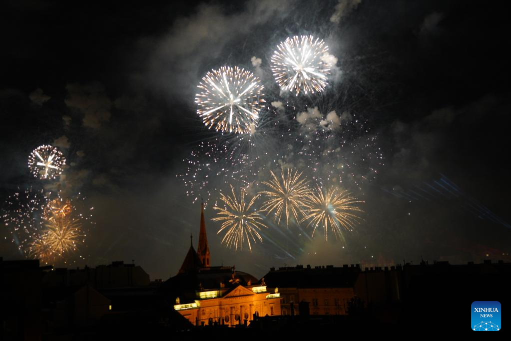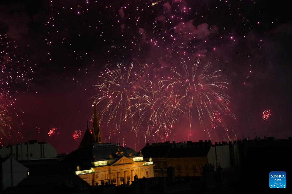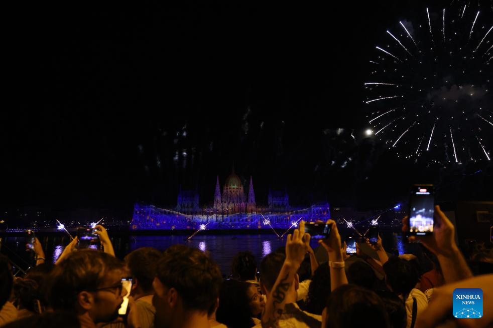BUDAPEST, Aug. 20 (Xinhua) -- Hungary celebrated its state foundation day on Tuesday with a series of events across the nation, culminating in an airshow over the Danube River and a spectacular fireworks display.