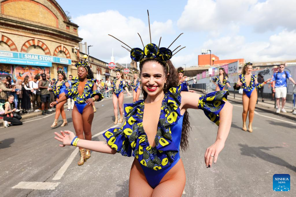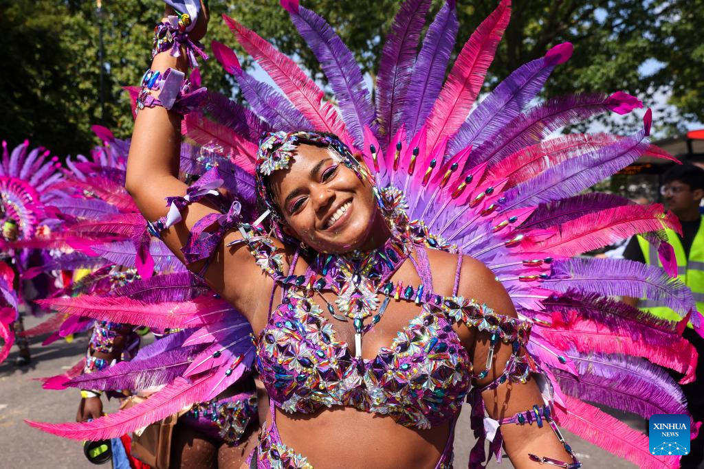 Performers participate in Notting Hill Carnival in London, Britain, on Aug. 26, 2024. Originated in the 1960s, the carnival is a way for Afro-Caribbean communities to celebrate their cultures and traditions. (Xinhua)