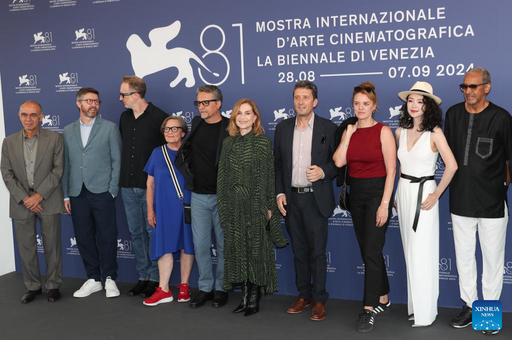 Members of the 81st Venice Film Festival Jury pose at the photocall in Venice, Italy, Aug. 28, 2024. The 81st Venice Film Festival will run from Aug. 28 until Sept. 7 at the Venice Lido island in Italy. (Xinhua/Li Jing)