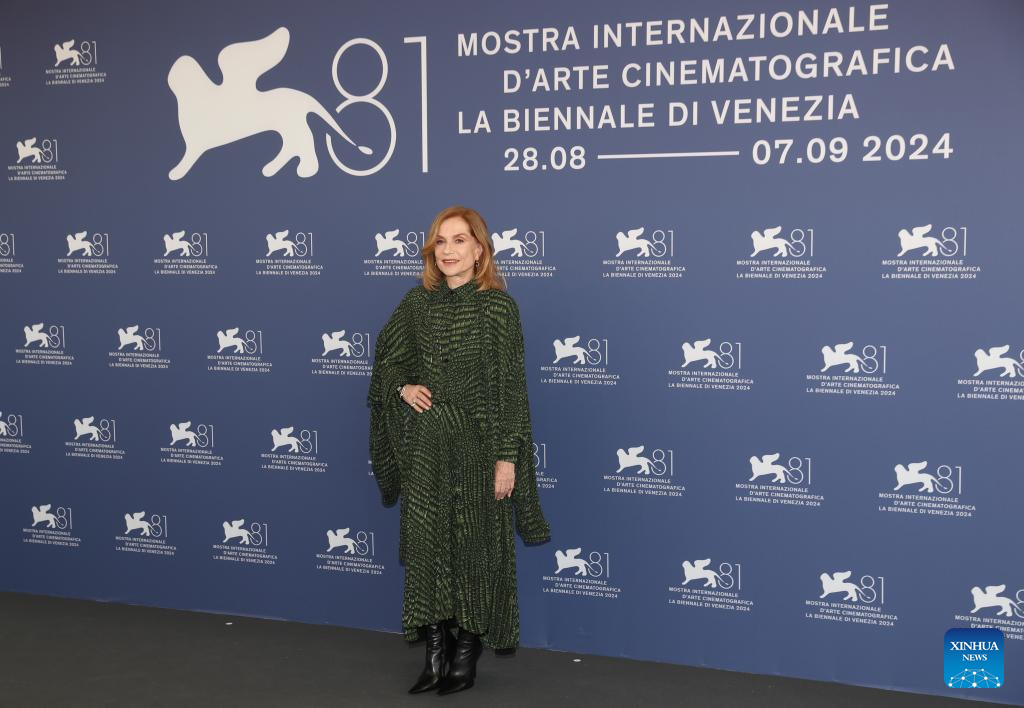 Isabelle Huppert, member of the 81st Venice Film Festival Jury, poses at the photocall in Venice, Italy, Aug. 28, 2024. The 81st Venice Film Festival will run from Aug. 28 until Sept. 7 at the Venice Lido island in Italy. (Xinhua/Li Jing)
