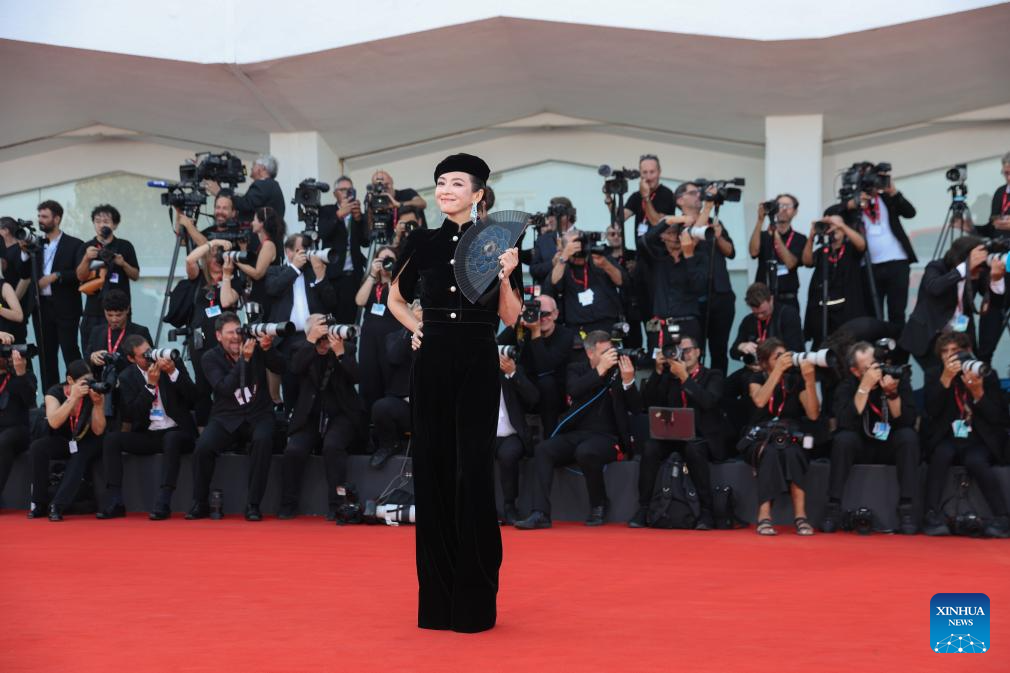 Chinese actress Zhang Ziyi, a jury member of the 81st Venice Film Festival, poses for photos on the red carpet before the film festival's opening ceremony in Venice, Italy, Aug. 28, 2024.