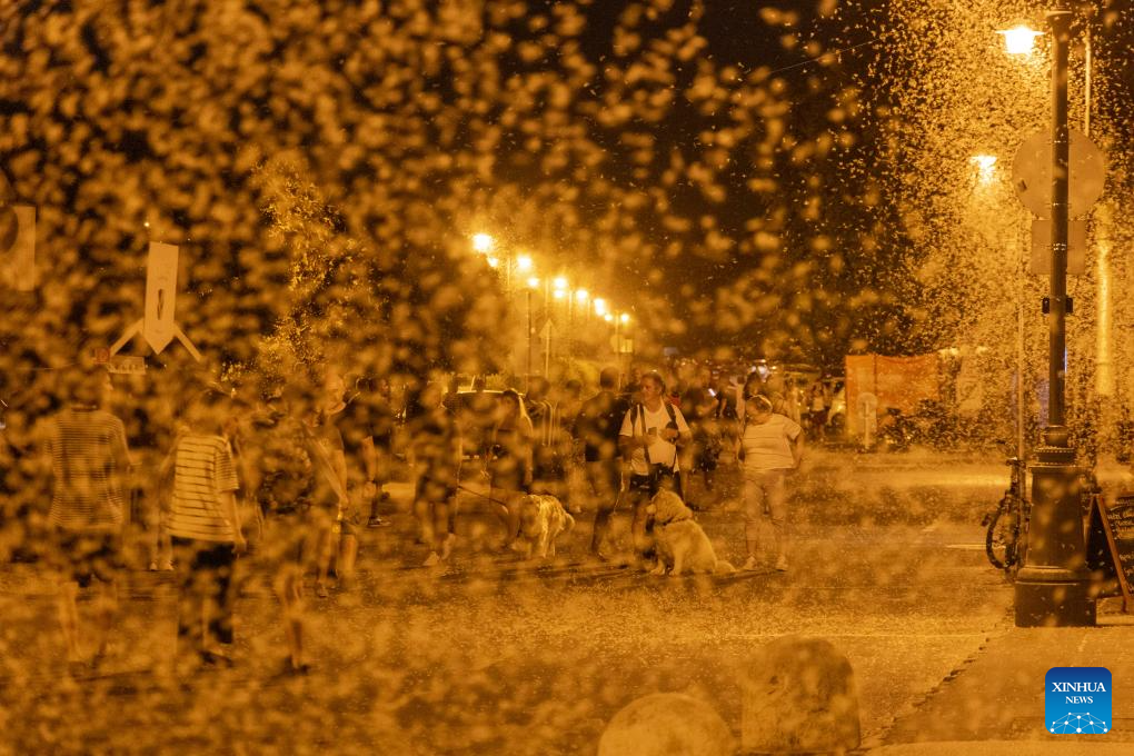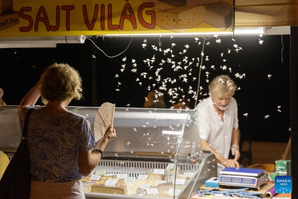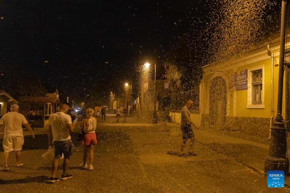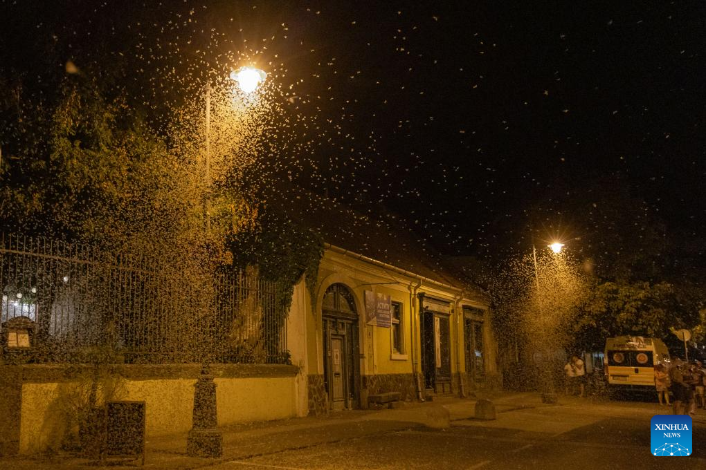 Swarms of mayflies are pictured in Szentendre, Hungary on Sept. 1, 2024. (Photo by Attila Volgyi/Xinhua)