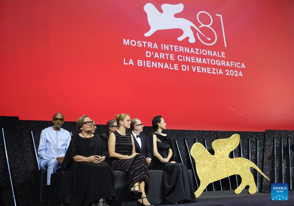Jury members of the 81st Venice Film Festival attend the film festival's awards ceremony in Venice, Italy, Sept. 7, 2024. The 81st Venice Film Festival closed here Saturday. (Xinhua/Li Jing)