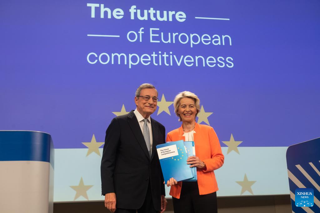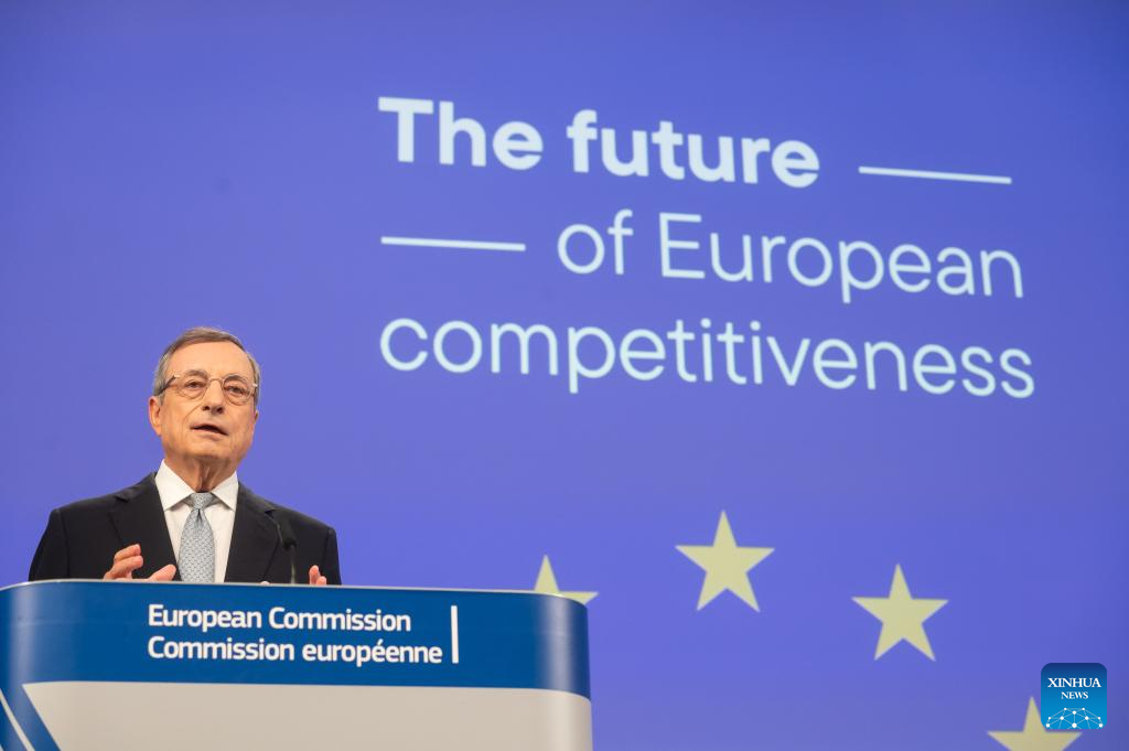 BRUSSELS, Sept. 9 (Xinhua) -- Mario Draghi, former Italian prime minister and former governor of the European Central Bank, on Monday released a long-awaited report with his recommendations on how to improve the economic competitiveness of the European Union (EU).